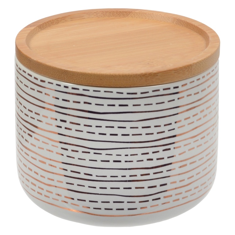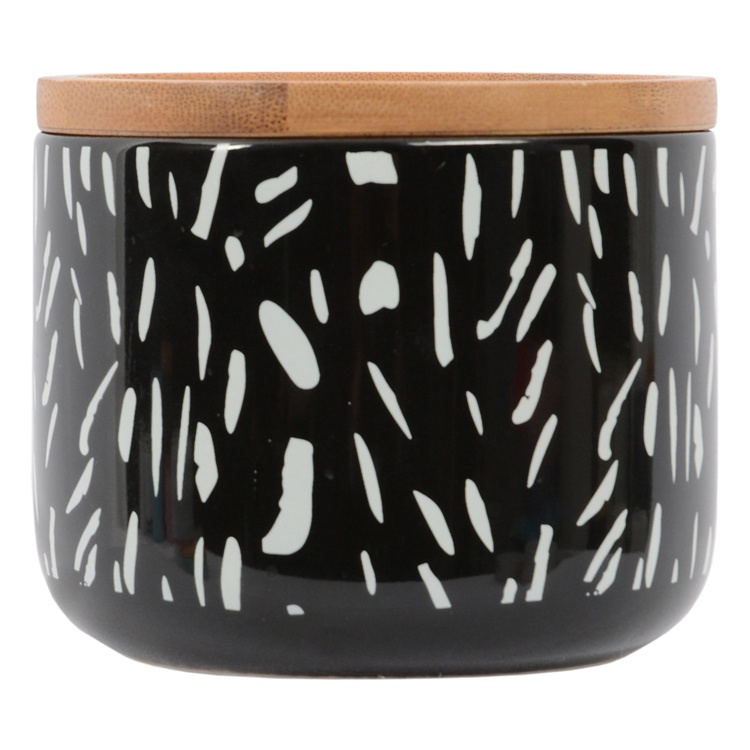 The trendy styling with lovely bamboo lids with seal and an indent make these ceramic canisters a delight to display and use.