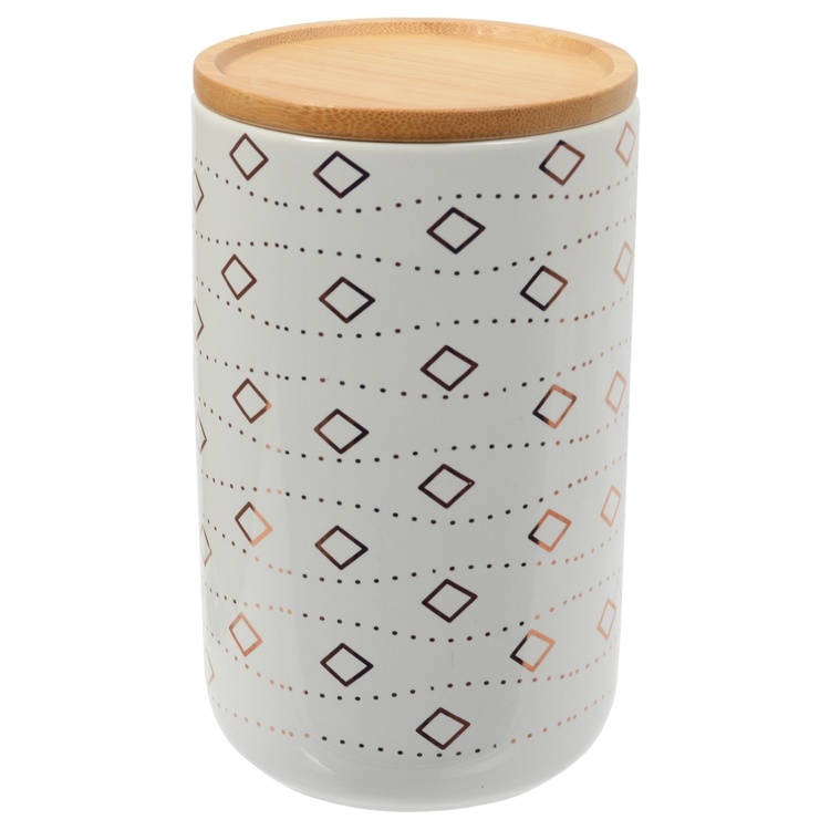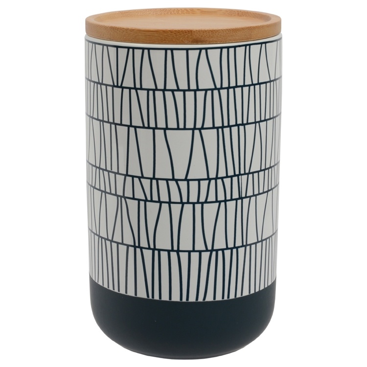 The trendy styling with lovely bamboo lids with seal and an indent make these ceramic canisters a delight to display and use.