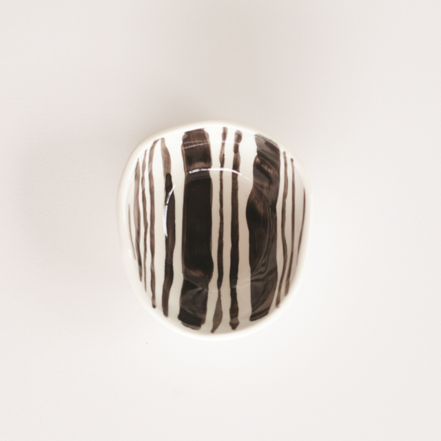 Beautiful handcrafted earthenware dessert-sized bowl glazed in black and white gloss.