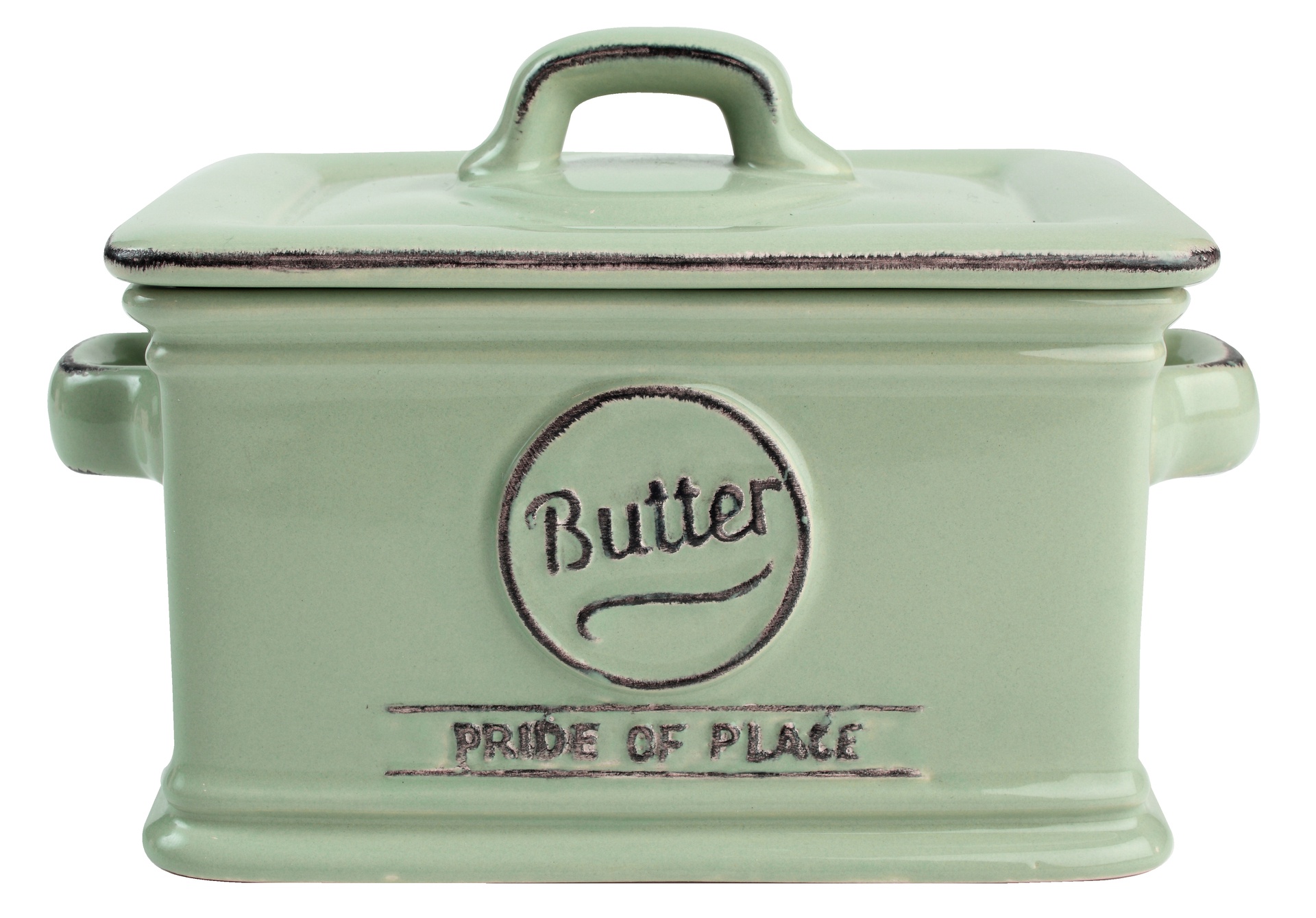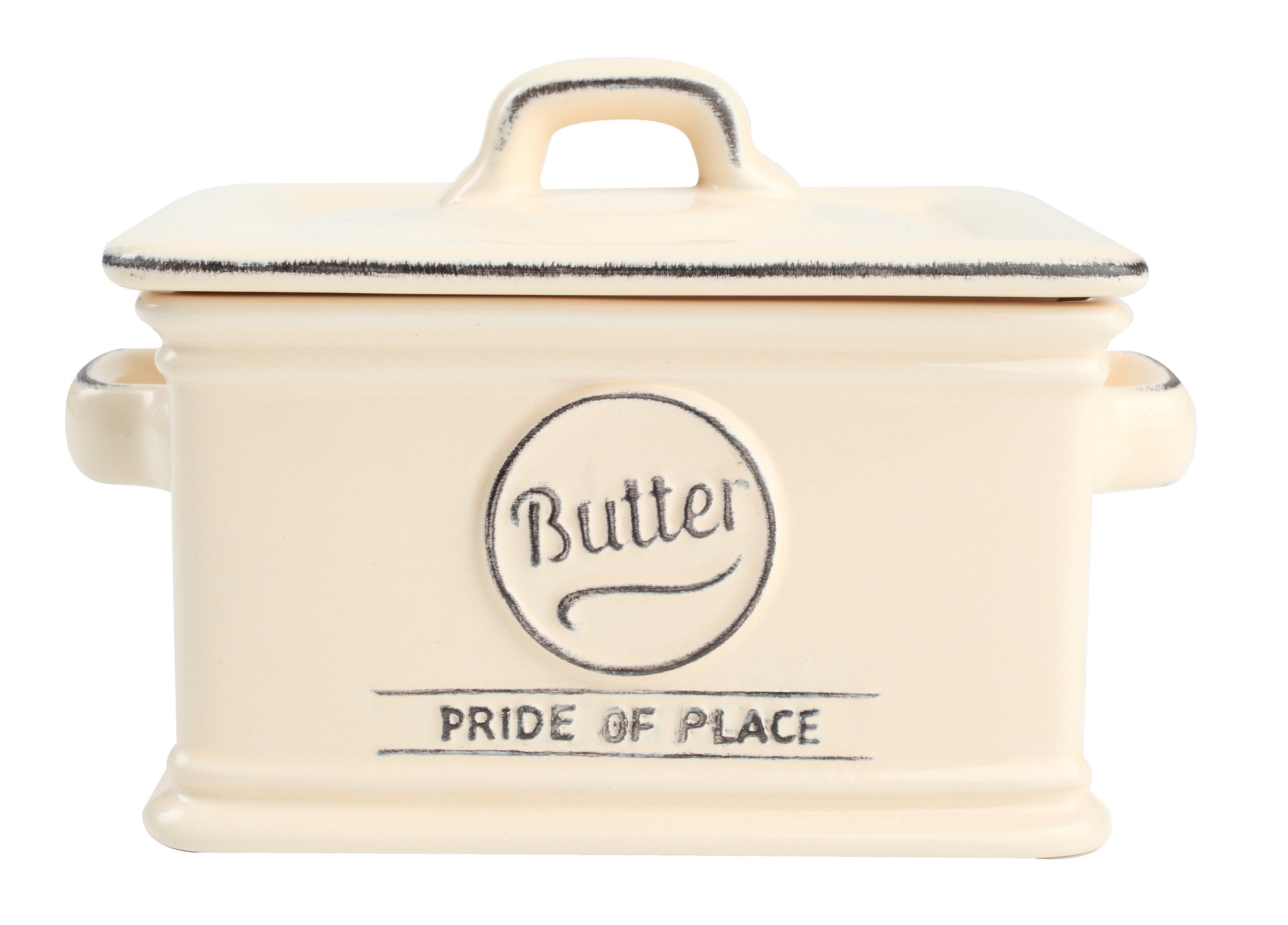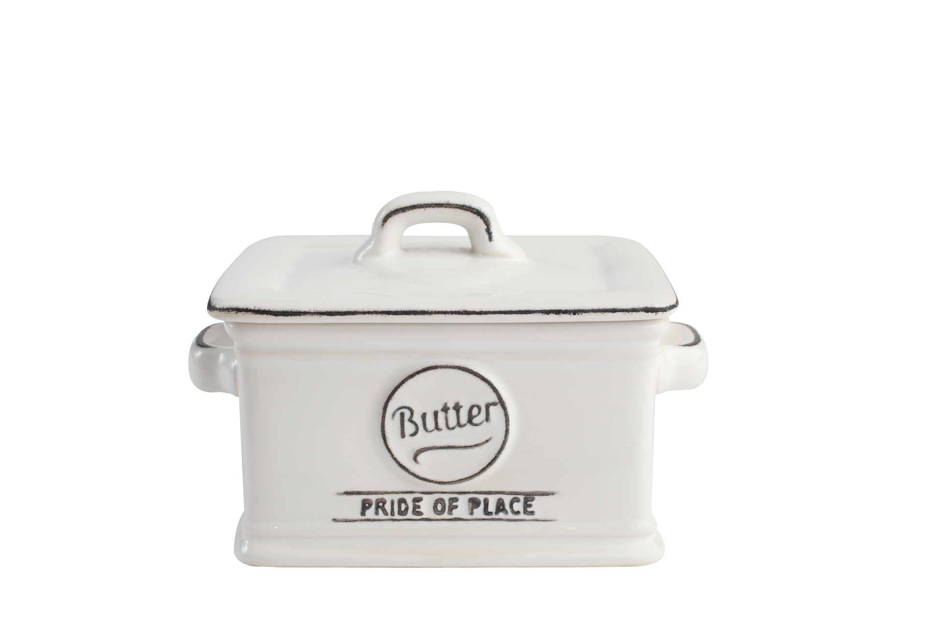 This gorgeous vintage ceramic butter dish has been designed to look like old enamelware but has all the advantages of modern ceramics.