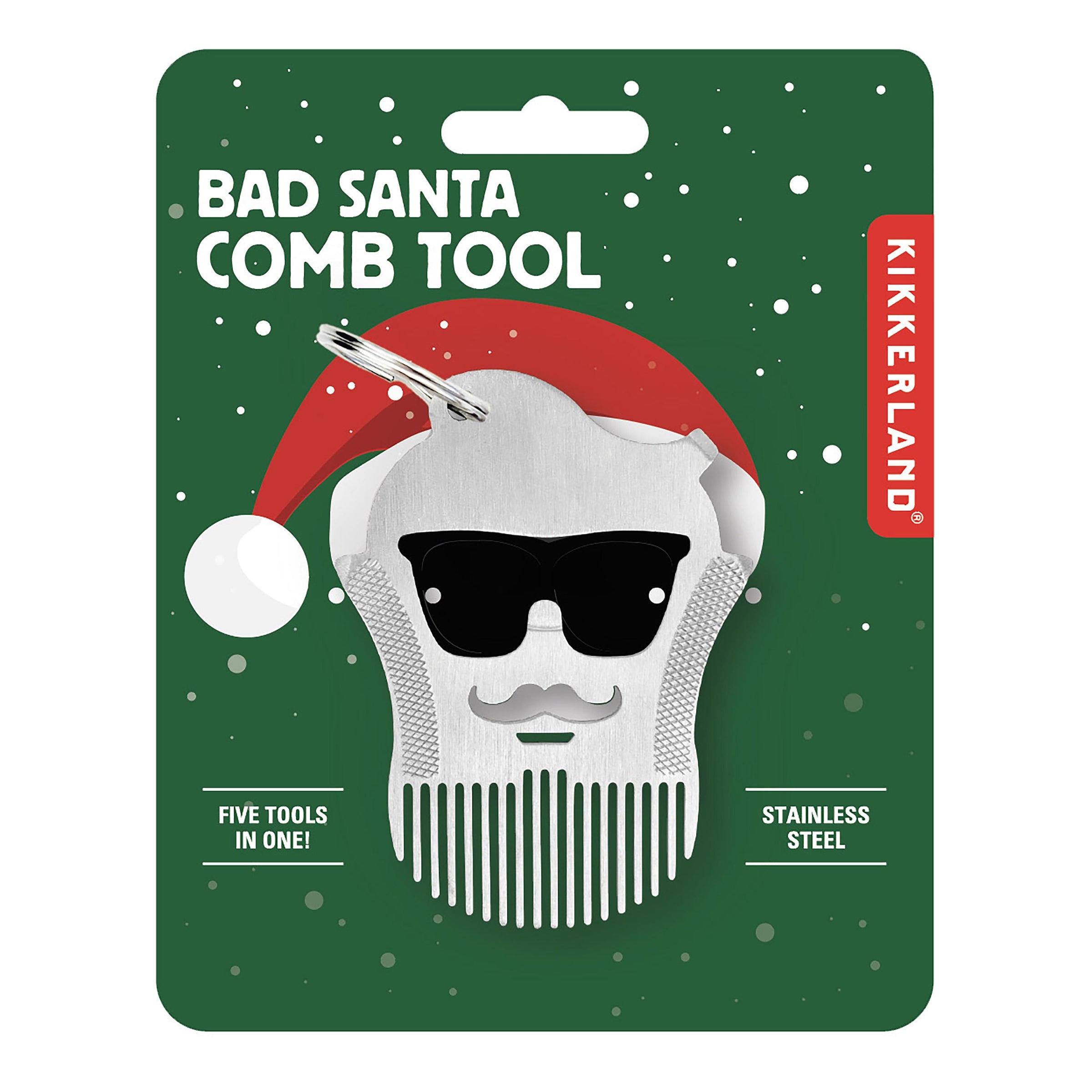 Bottle Opener, Lanyard Hole, Flat Head Screwdriver, Moustache Stencil, Nail Cleaner and Comb
