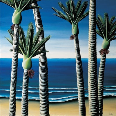 She paints with acrylic paint on stretched canvas at her home studio in Christchurch, NZ.
