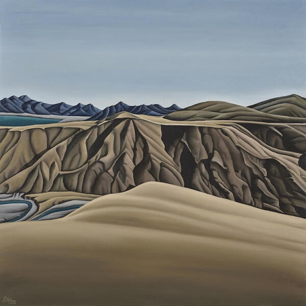 Inspired by the rugged beauty of New Zealand, her paintings bare the landscape down to its most simple form to reveal the essence of the land beneath.