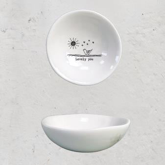 Sweet porcelain bowls with a vignette in the base and beautiful saying.