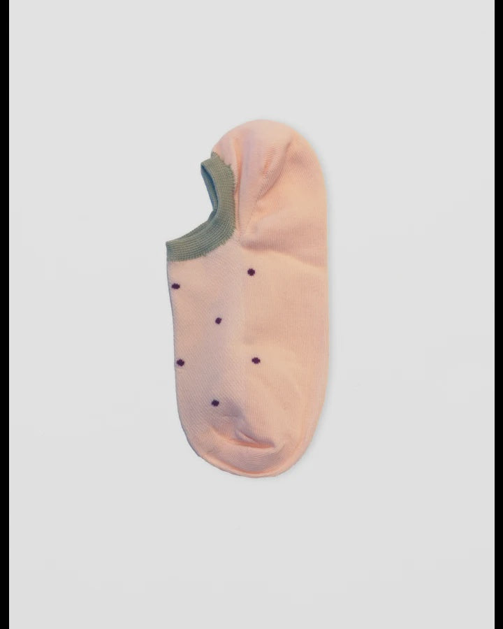 S + G No Show Socks - Baby Pink w Maroon Dots
