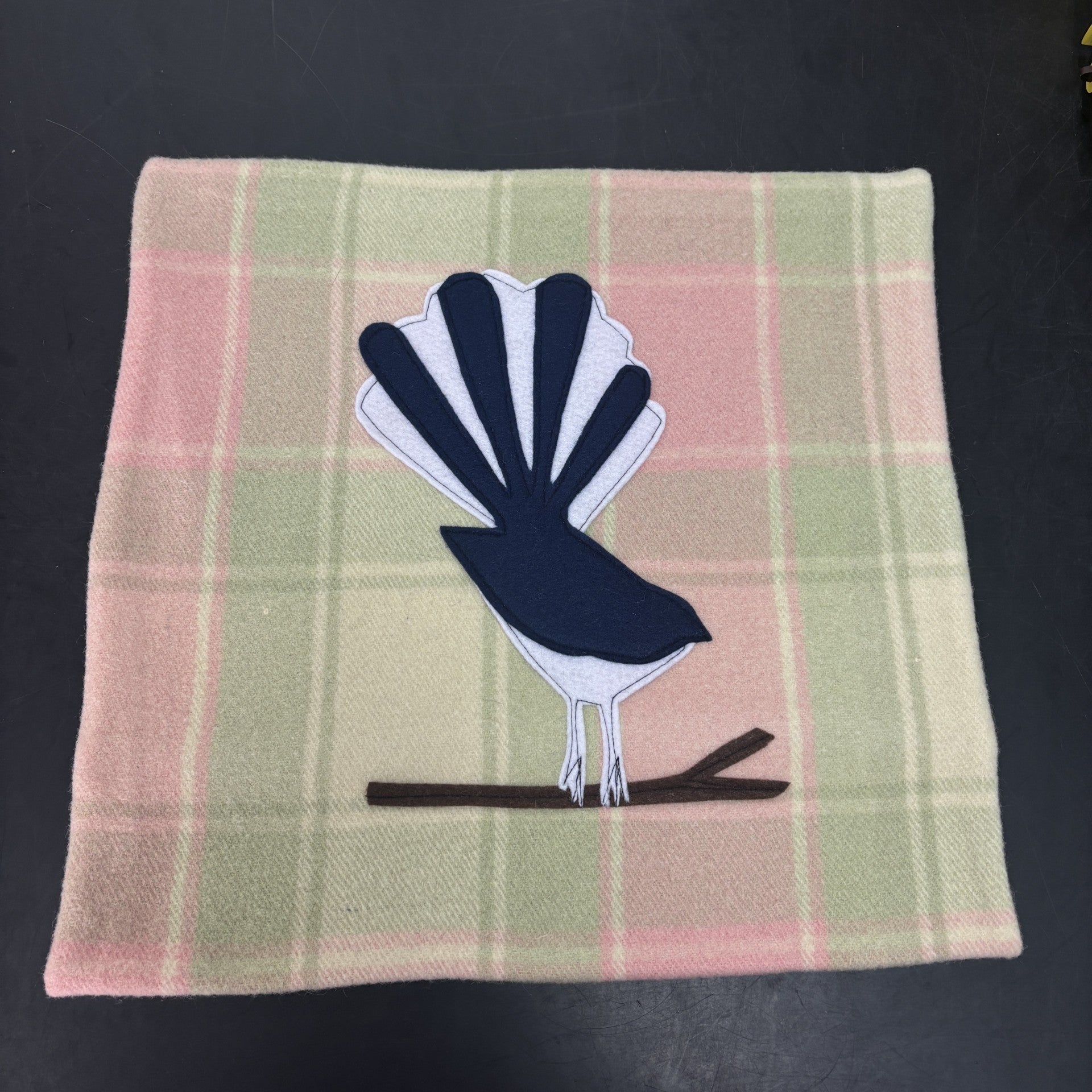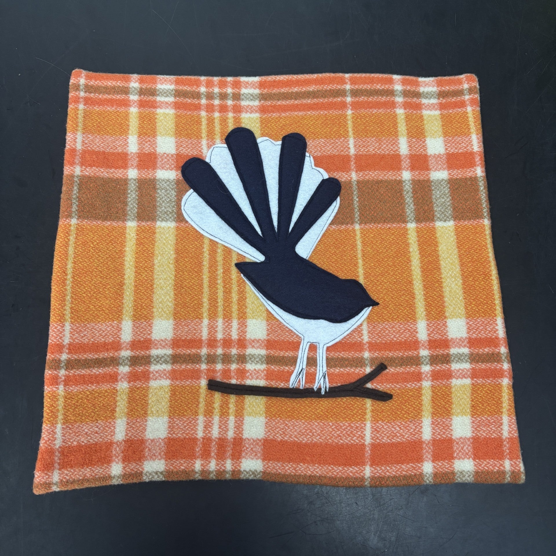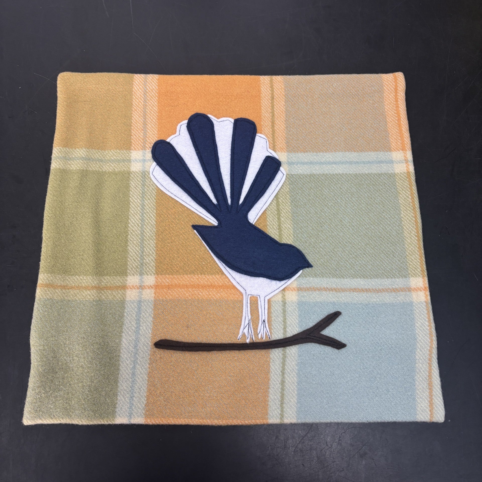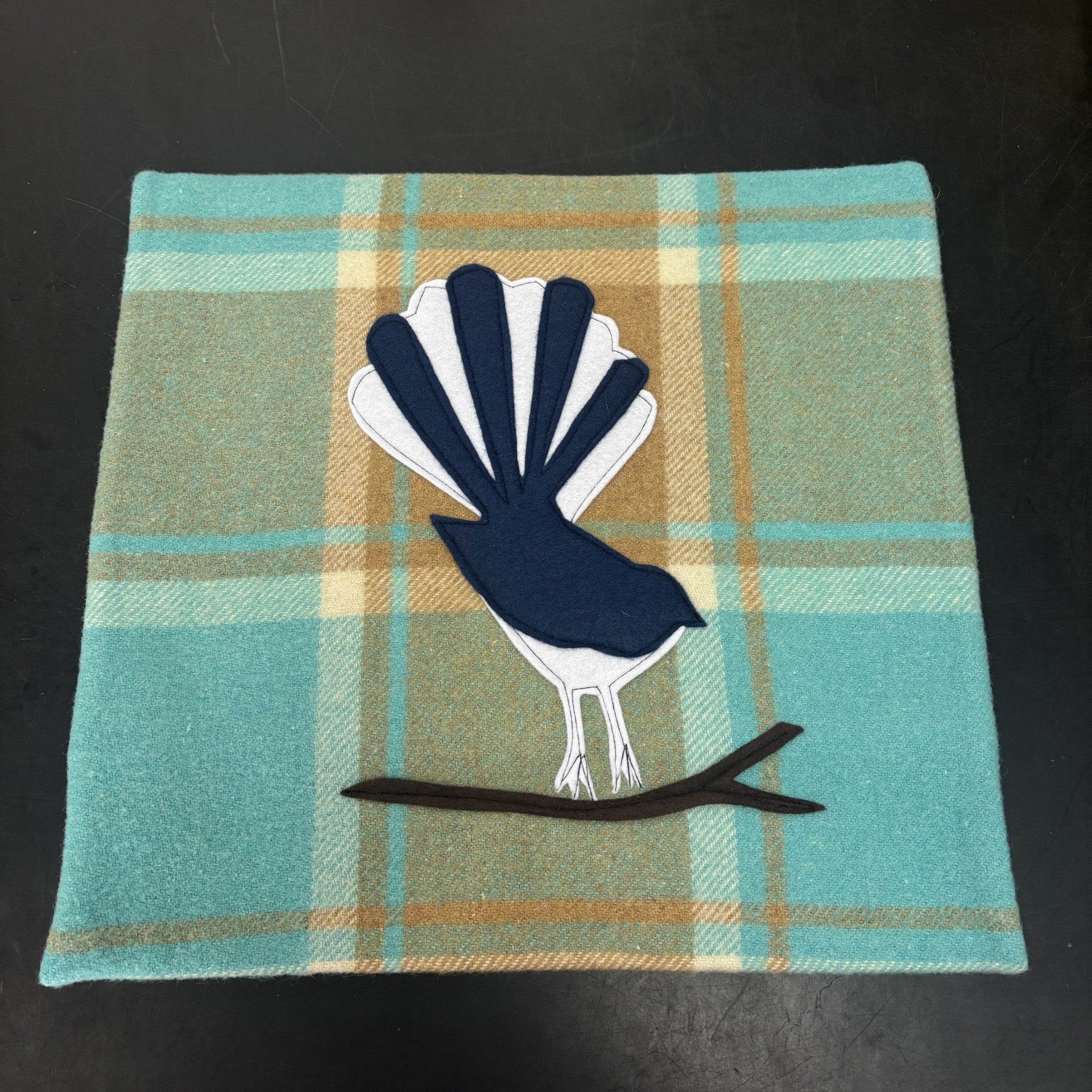 These handmade blanket cushions are lovingly made in New Zealand from recycled wool blankets and features a hand sewn motif.