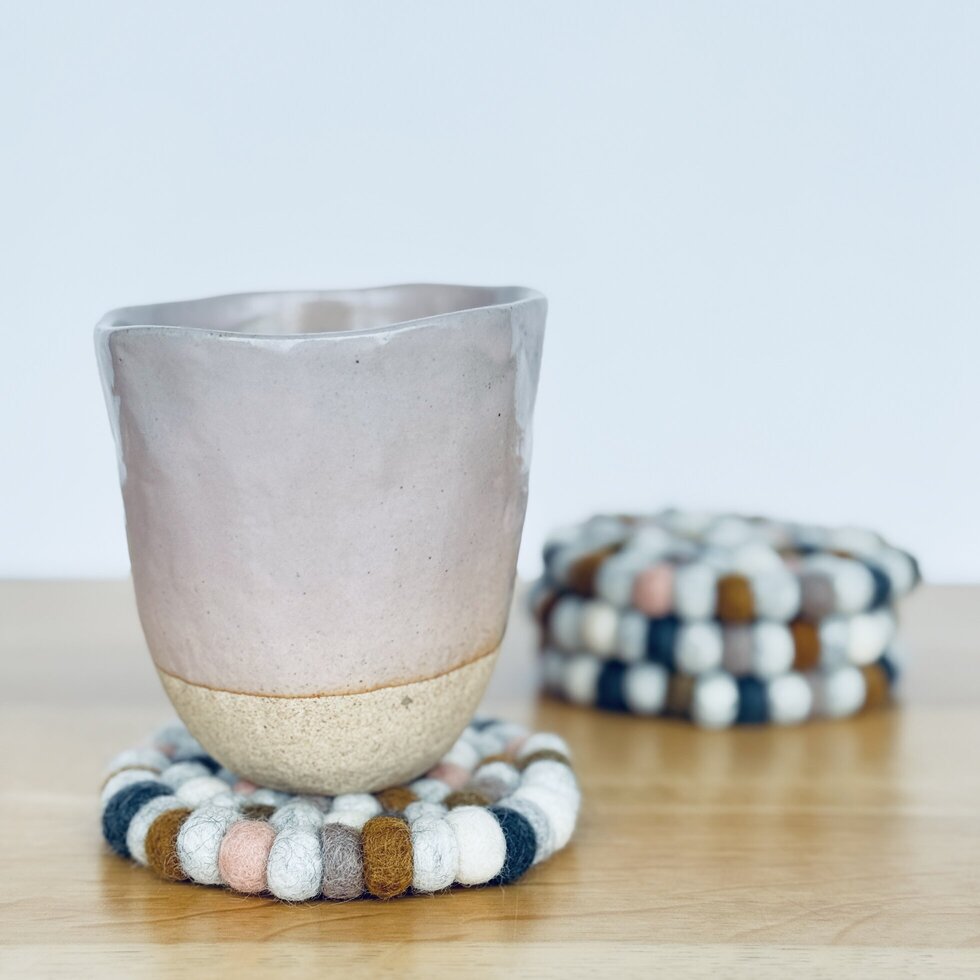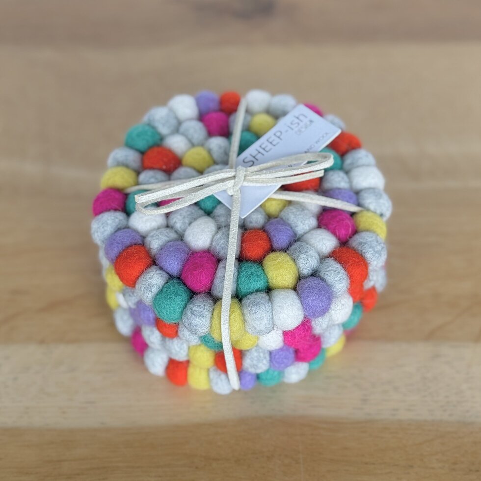 Handmade in Nepal using 100% New Zealand wool. This set of 4 funky coasters are simple but beautiful and add a textural design element to any home or office!
