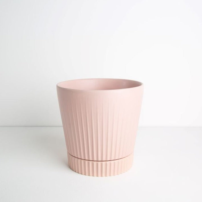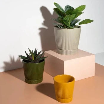 Make any houseplant the star of your space with our beautifully textured Indie Planters. Ceramic planter with the external rib on the matching saucer, gives the planter an elevated modern look and feel.