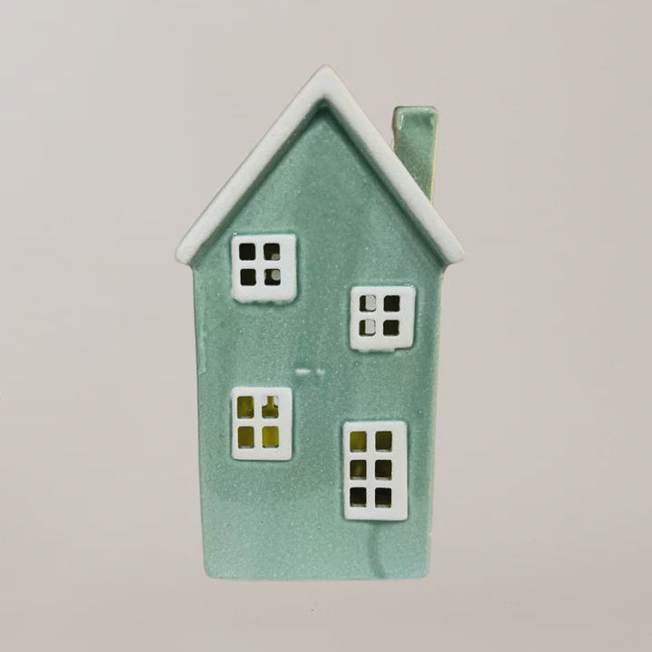 A beautiful ceramic decoration that blends festive charm with subtle elegance. The lovely duck egg tealight house is complemented by finely crafted cut-out windows that can softly cast light, creating a warm and inviting atmosphere.