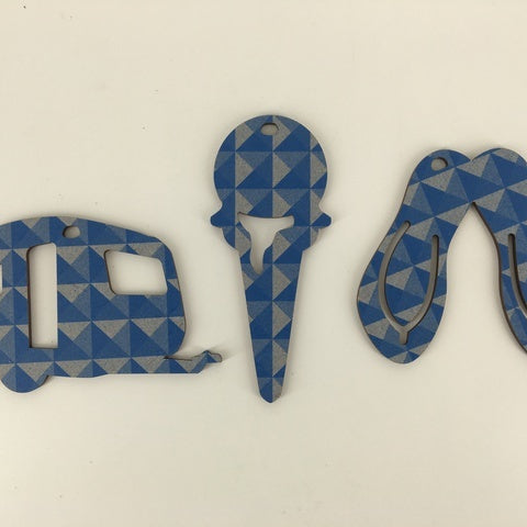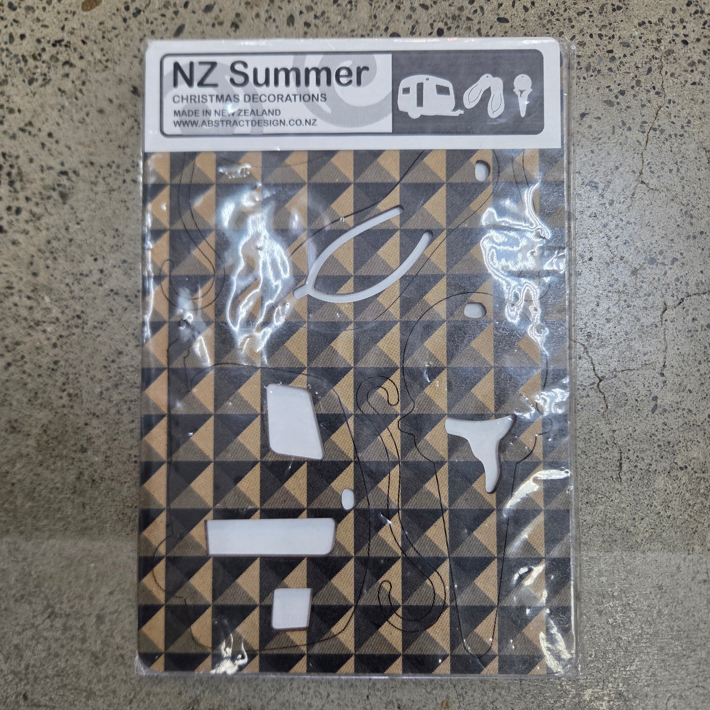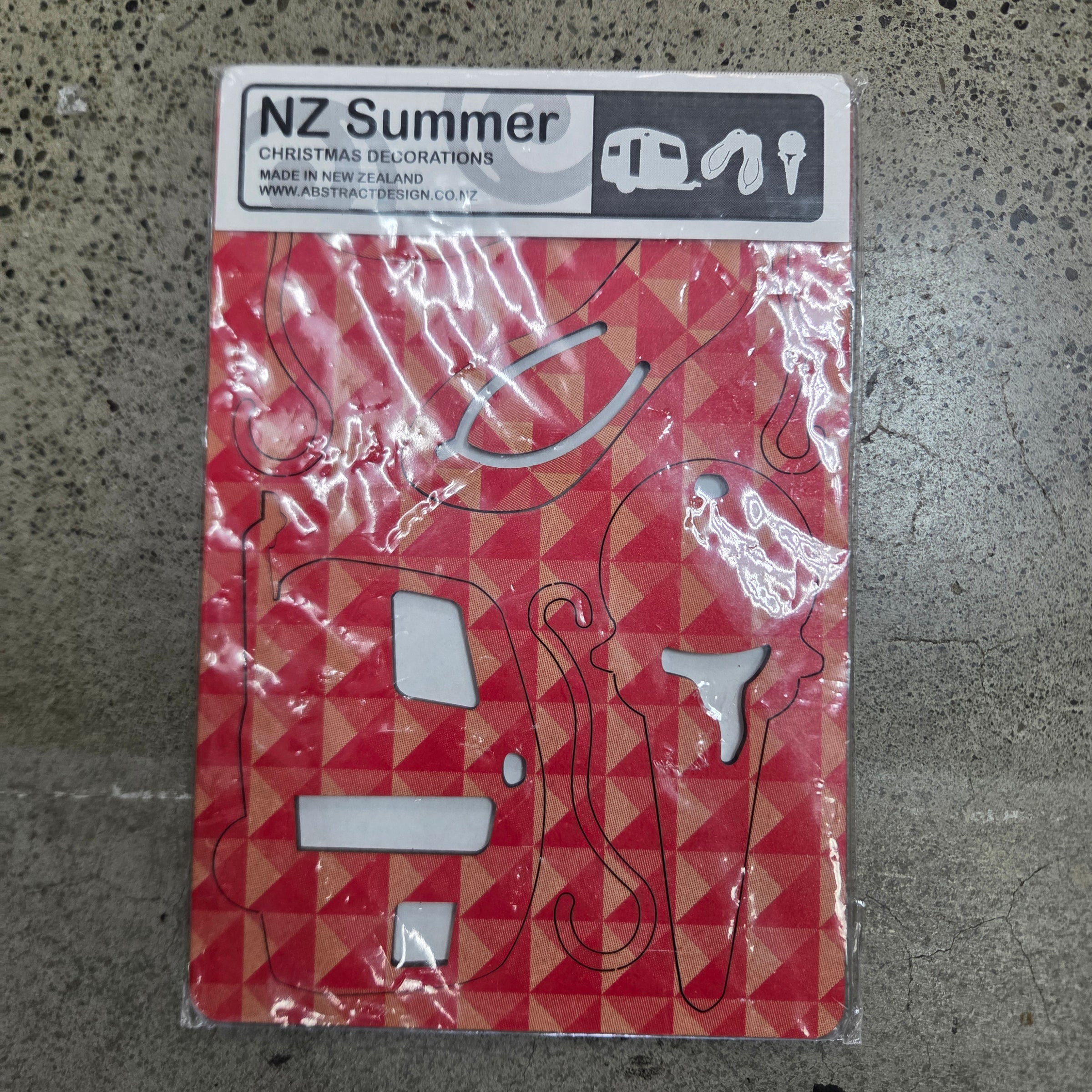 Laser cut from printed MDF, package tidily with hooks for each decoration to hang on. Simply push the pieces out of the board and hang the decoration on the hanger, then hang on the tree!