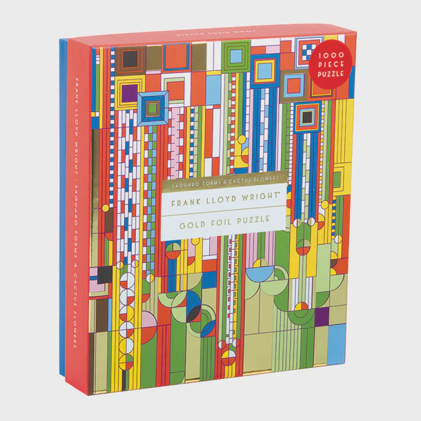 The Frank Lloyd Wright Saguaro Forms And Cactus 1000 Piece Foil Puzzle brings a new flavour to an iconic piece of art. The foil added to this famous image will guide you through this puzzle bringing joy and relaxation to amateur and pro puzzlers alike.