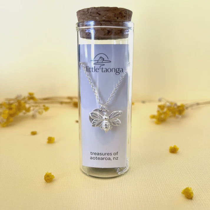 Little Taonga Honey Bee Necklace. A sweet little 2 piece pendant necklace with cute buzzy bee and honey charm.