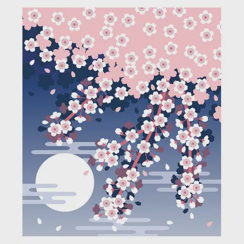 Japanese Dishcloth - Moon & Cherry Blossom