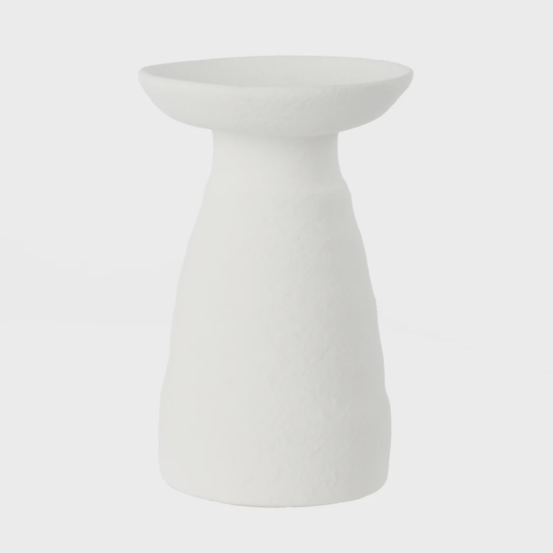 Enhance your space with the Kamari Candle Holder, crafted from clay with a white glaze and a timeless jar silhouette. Its elegant design adds a contemporary touch, making it the perfect complement to your favorite candles. Place it on a corner table, mantelpiece, or dining table for intimate lighting and a warm, inviting atmosphere.