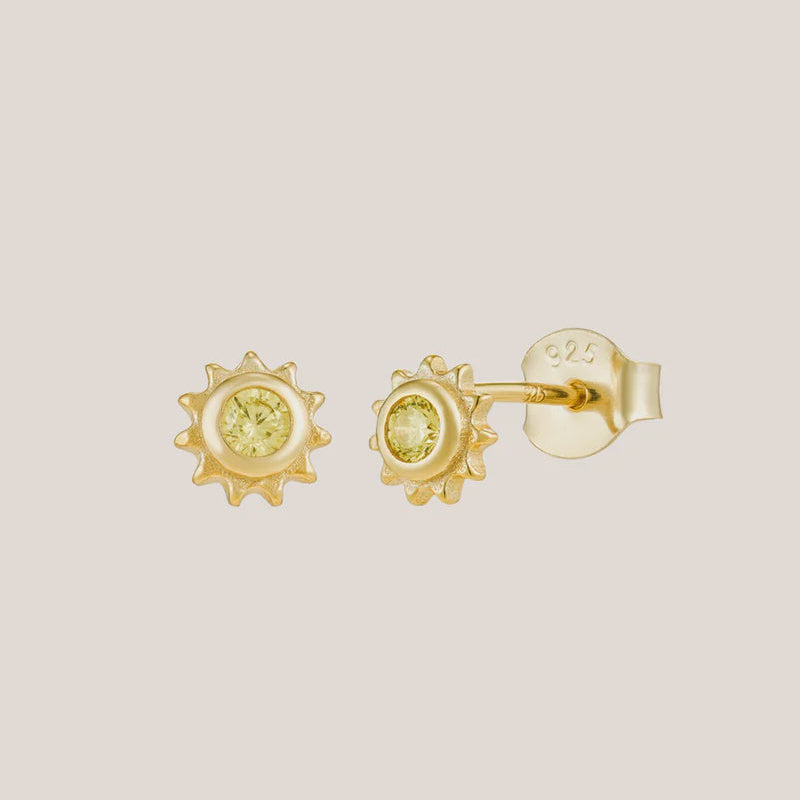 The perfect gift for someone who brings sunshine into your world or an uplifting little treat to self. At the heart of each stud sits a pale yellow CZ stone, reminiscent of the sun's gentle glow.