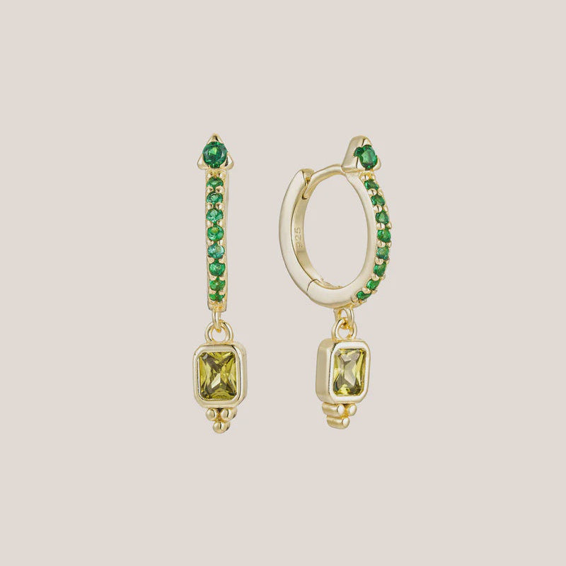 Featuring green cubic zirconia stones, these hoops embody the spirit of renewal and hope. Wear them as a radiant reminder to embrace each day with positivity and enthusiasm, celebrating the beauty and potential of new beginnings.