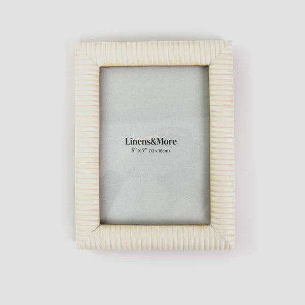 Ribbed detail in soft winter white tones. This frame is made from resin and is perfect for any interior space. Fits a 4×6″ photograph.