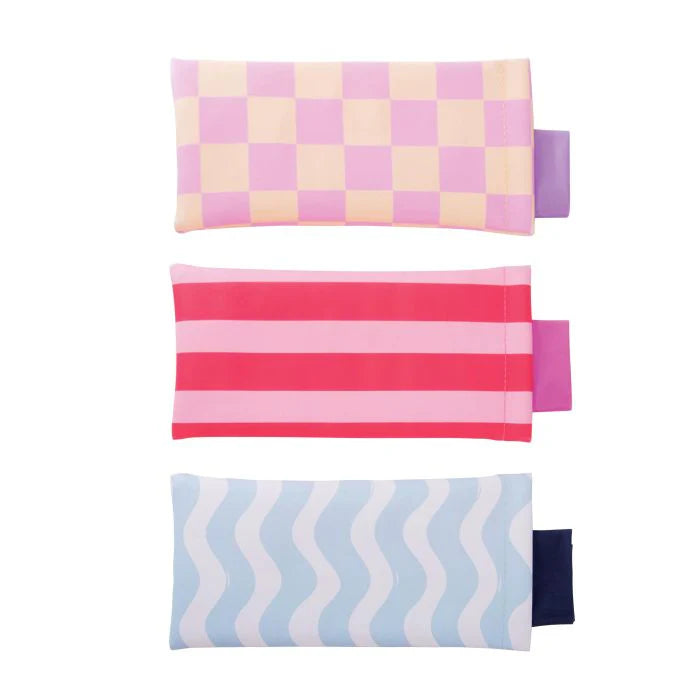 Super-soft glasses pouch has a handy squeeze-to-open snap-shut closure, and comes with a matching microfibre cleaning cloth.