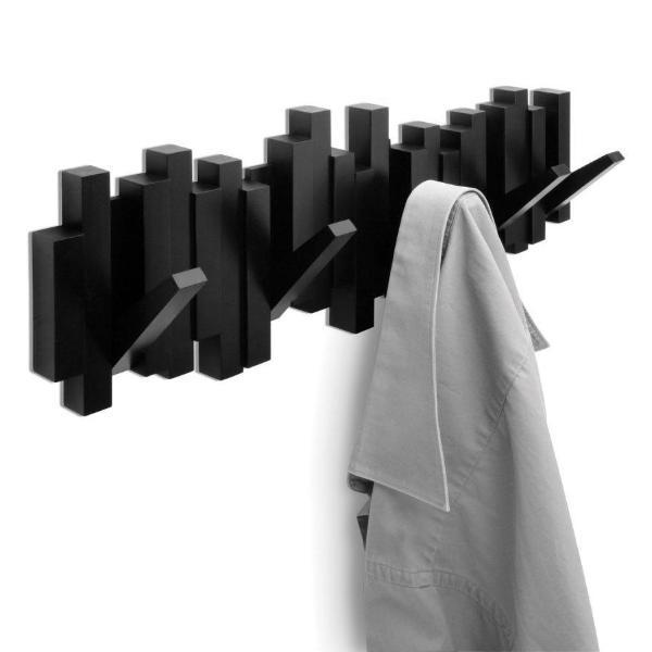 STICKS' modern and staggered appearance conceals it's functionality as hooks can be flipped up when not in use. A unique wall coat rack, this multi hook features 5 flip-down hooks, keeping you organized while maintaining a modern appearance.