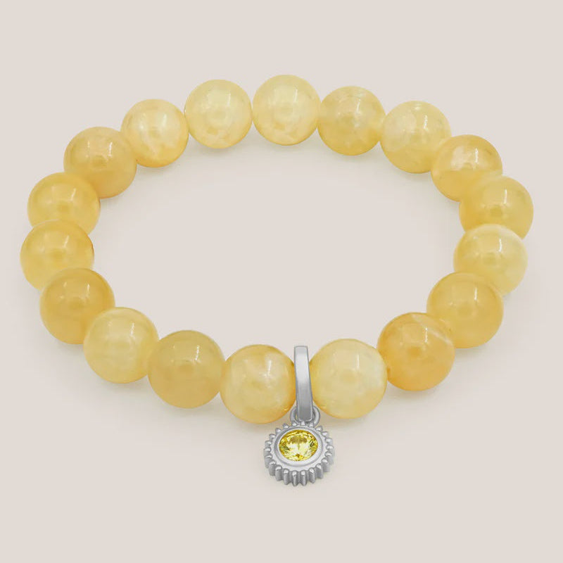 Symbolising vitality, resilience, and joy, this bracelet features uplifting yellow quartz beads and a beautifully detailed sun charm set with a sparkling yellow CZ stone that catches the light with every movement. Whether you're wearing it as a personal symbol of strength or gifting it to someone who lights up your life, this bracelet is a heartfelt celebration of connection and hope. Inscribed on the reverse are the words ‘you are my sunshine’ - a sweet and powerful reminder of the love and brightness that guide you.